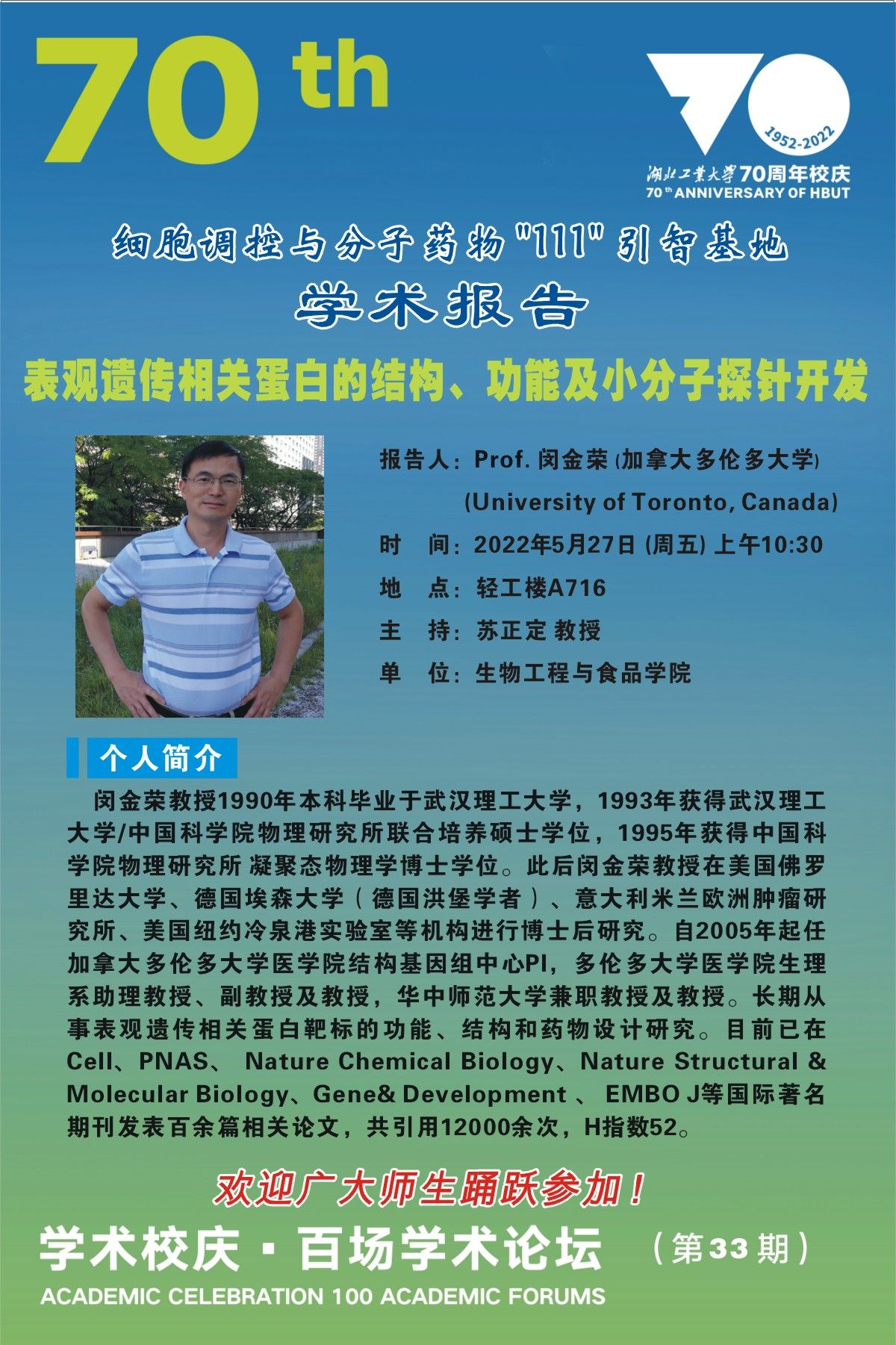 报告人:Prof. 闵金荣(加拿大多伦多大学)(University of Toronto, Canada)