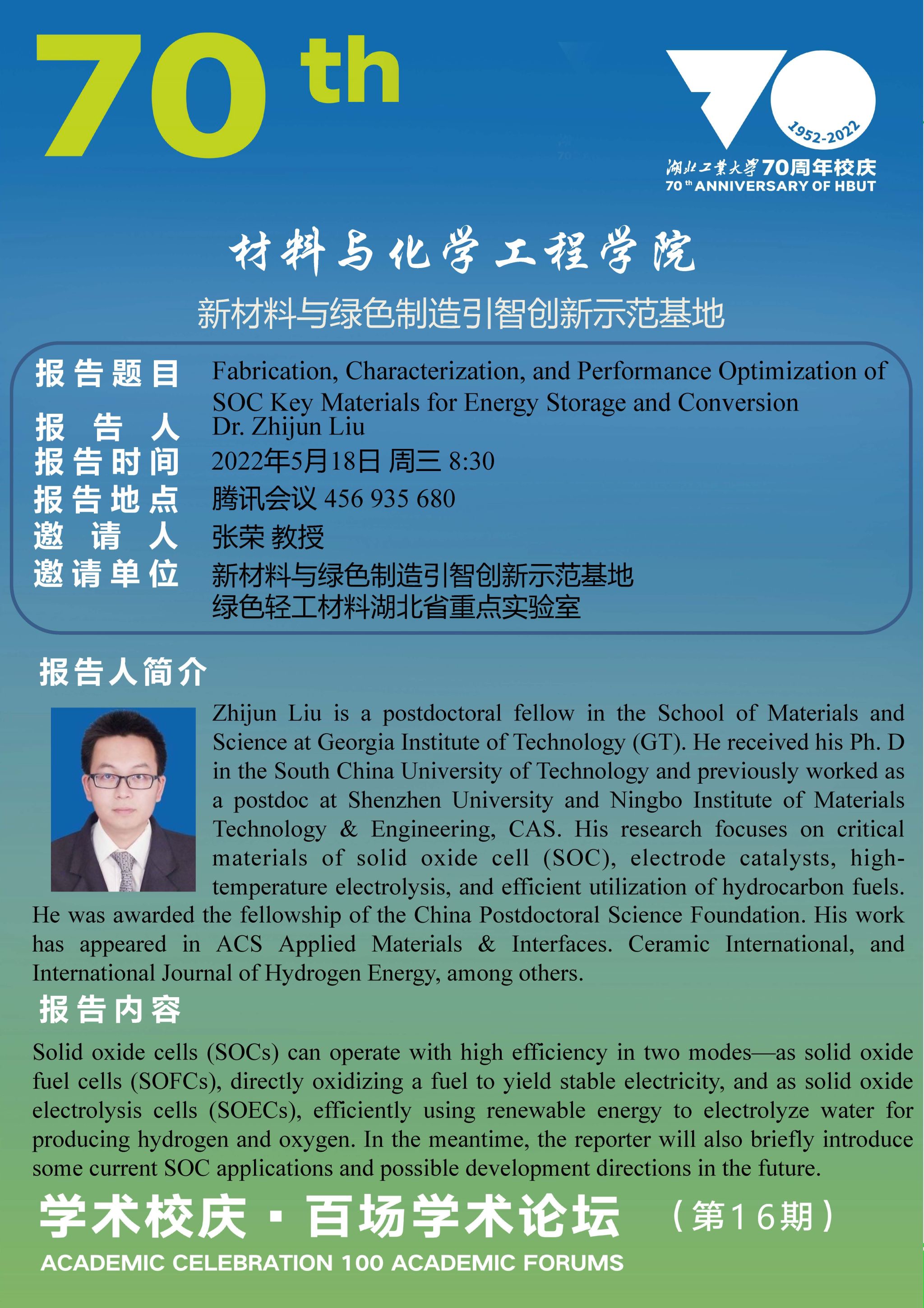 学术校庆·百场学术论坛--新材料与绿色制造引智创新示范基地学术讲座(第11期 )