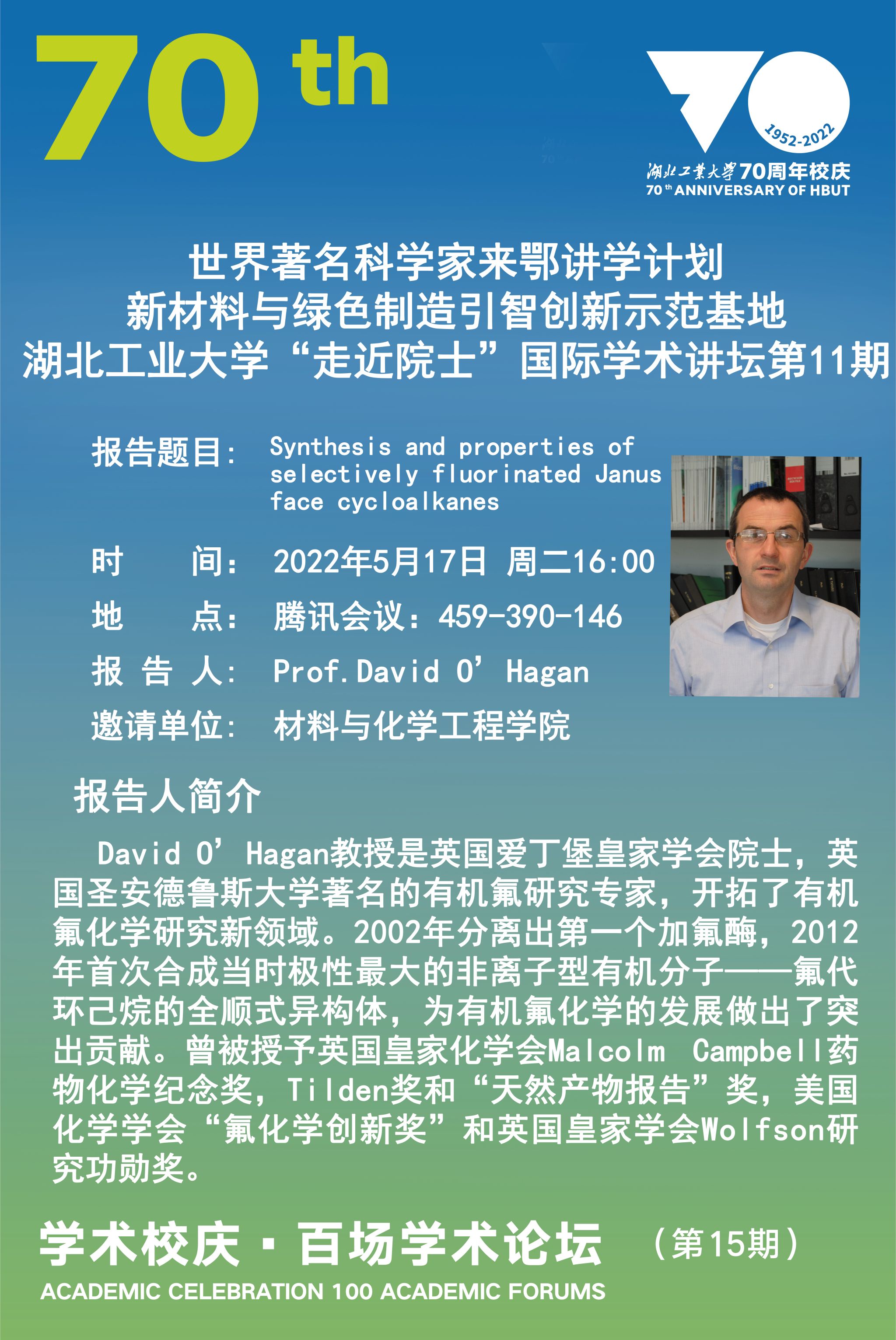 学术校庆·百场学术论坛--新材料与绿色制造引智创新示范基地学术讲座(第10期)